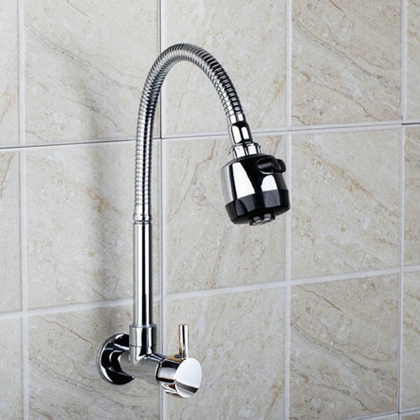 Torneira de parede gourmet para cozinha flex especificações: - bica: alta / baixa (ajustável)- saída da água: 2 modos- bica móvel: sim, movimenta 360°- acionamento: 1/4 de volta- água quente/fria: somente fria- altura: ajustável- largura: 7,0cm - profundidade: 22cm (ajustável...