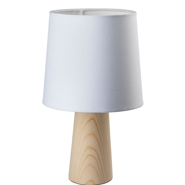 O abajur rus branco, de madeira e tecido algodão, para mesas, estantes, mesinhas, cômodas e prateleiras. Com luz indireta e tênue, para suíte, quarto, hall, sala de tv e corredor.soquete: e27.voltagem: 127/220v.base: madeira pinhus natural.cúpula: arame, poliestireno e tecido...