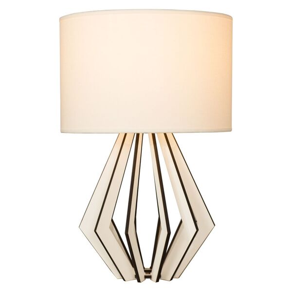 Cúpula em tecido de algodão cru; soquete e27 (lâmpada comum); dimensões da cúpula: 30 cm de diâmetro x 20 cm de altura; dimensões do abajur completo com cupula: 30cm de diâmetro x 47cm de altura; comprimento do cabo de cristal: 150cm com botão liga e desliga; base construída em mdf branco.