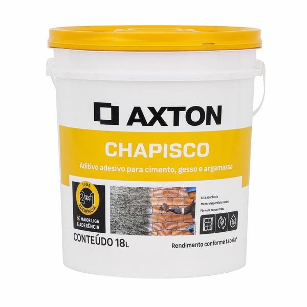 Ideal para chapiscos e argamassas, o Aditivo para Chapisco da Axton pode ser utilizado em diversas superfícies e etapas da construção, como: colunas, vigas, base de contrapisos de argamassa, emboço interno e externo, base para aderir argamassa de reboco e chapisco comum.