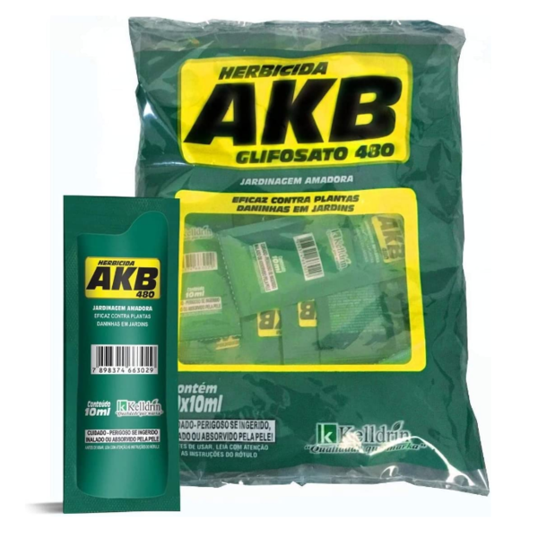 Eficaz contra plantas daninhas em jardins. 20 sachês de 10ml 10ml para 1 litro indicação akb 480 kelldrin 20x10ml é indicado para o controle total de ervas daninhas emergentes (não seletivo)   modo de usar diluir toda a embalagem (10 ml) do produto akb 480 da...