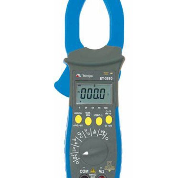 Aplicações instrumento que tem como principal característica a medição de corrente e tensão ac com filtro pwm encontrado em inversores de frequência realizando também medições de corrente dc tensão dc frequência em tensão e corrente resistência e barra gráfica. segurança este equipamento está de acordo com a categoria de instalação iv 600v iii 1000v da iec61010-1. Como determinado pela norma de segurança nr-10 utilize sempre equipamentos de proteção individual. características • display: 4 dígitos 10000 contagens • iluminação de fundo • barra gráfica: 41 segmentos • taxa de amostragem: 2 vezes/s • indicação de polaridade: automática • indicação de sobre faixa: ”ol” ou “-ol” é mostrada. • indicação de bateria fraca: . • true rms ac. • filtro pwm. • mudança de faixa: automática. • auto power off: aprox. 10 minutos ou desabilitado. • data hold. • peak hold. • registro max/min • corrente de partida (inrush). • abertura de garra: 50mm. • diâmetro do condutor: 35mm. • coeficiente de temperatura: 0.1 x (precisão especificada)/°c ( 28°c). • ambiente de operação: 0°c a 50°c rh ambiente de armazenamento: -20°c a 60°c rh altitude de operação: até 2000m. • uso interno. • grau de poluição: ii. • alimentação: uma bateria de 9v (neda 1604). • duração da bateria: aprox. 50h (alcalina). • emc: não especificado para uso em campo emc > 0.5v/m. • dimensões: 246(a) x 80(l) x 43(p)mm. • peso: aprox. 360g (incluindo bateria). • garantia: 12 (doze) meses a partir da data da aquisição. geral a precisão é dada como ±(% da leitura + número de dígitos menos significativos) para 23°c ±5°c e umidade relativa até 70%. Especificação válida para 10% a 100% da faixa de medida. Ciclo de calibração recomendado de 1 ano. tensão dc • faixa: 600v • precisão: ±(1.0%+5d) • resolução: 0.1v • impedância de entrada: 1mω • proteção de sobrecarga: 600v dc/ac rms corrente dc • faixa: 1000a • precisão: ±(2.0%+5d) • resolução: 0.1a • proteção de sobrecarga: 1200a dc/ac rms (1 minuto máx.) tensão ac • faixa: 600v • precisão: ±(1.0%+5d) para 20hz ~ 100hz ±(6.0%+5d) para 100hz ~ 400hz • resolução: 0.1v • fator de crista: • impedância de entrada: 1mω • proteção de sobrecarga: 600v dc/ac rms corrente ac • faixa: 1000a • precisão: ±(2.0%+5d) para 20hz ~ 100hz ±(6.0%+5d) para 100hz ~ 400hz • resolução: 0.1a • fator de crista: • proteção de sobrecarga: 1200a dc/ac rms (1 minuto máximo) capacitância • faixa: 1000µf • precisão: ±(5.0%+10d) • resolução: 0.1µf • proteção de sobrecarga: 600v dc/ac rms resistência • faixas: 1000ω 10000ω • precisão: ±(1.5%+5d) • resolução: 0.1ω 1ω • tensão de circuito aberto: 3v • proteção de sobrecarga: 600v dc/ac rms freqüência • faixa: 20hz ~ 400hz • precisão: ±(0.5%+5d) • resolução: 0.1hz • sensibilidade de entrada: 5v rms; sinal ttl 5a rms; (20hz ~ 100 hz) 10a rms (100hz ~ 400hz) • proteção de sobrecarga: 600v dc/ac rms temperatura • faixas: -40°c ~ 999.9°c 1000°c ~ 1200°c -40°f ~ 999.9°f 1000°f ~ 2200°f • precisão: -40°c ~ 1200°c ±(0.5%+1°c) -40°f ~ 2200°f ±(0.5%+2°f) obs: precisão e faixa do termopar não inclusa • resolução: 0.1°c 1°c/0.1°f 1°f • proteção de sobrecarga: 600v dc/ac rms. teste de diodo • faixa: diodo • corrente de teste: 0.2ma ±0.1ma • tensão de circuito aberto: • precisão: ±(3.0%+3d) • proteção de sobrecarga: 600v dc/ac rms teste de continuidade • faixa: buzina • descrição: a buzina toca se a resistência for menor que aprox. 30ω • proteção de sobrecarga: 600v dc/ac rms acessórios 1. Manual de instruções 2. Pontas de prova (par) 3. Bateria 9v 4. Termopar tipo k 5. Adaptador para conector tipo k 6. Bolsa para transporte