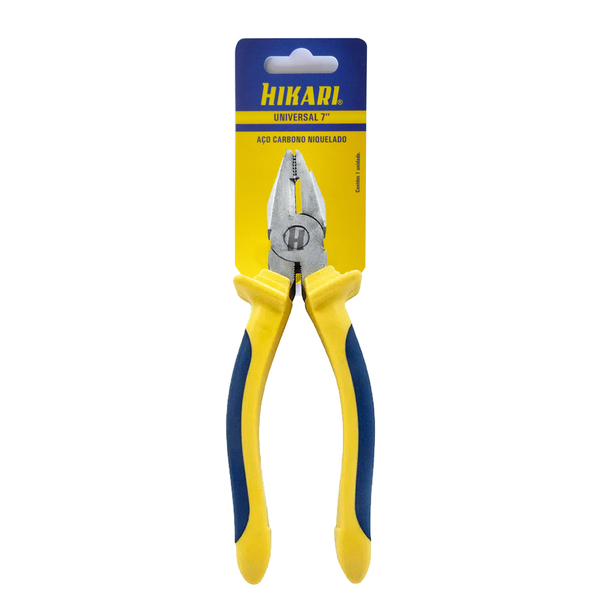 Alicate universal 7" série 600 hikari 21a602 o alicate universal 7" série 600 hikari 21a602 é uma ferramenta indispensável em qualquer bancada de trabalho, seja em oficinas mecânicas, eletricidade, eletrônica, artesanatos, etc. Construído em aço carbono e cabo em pvc.   espec...
