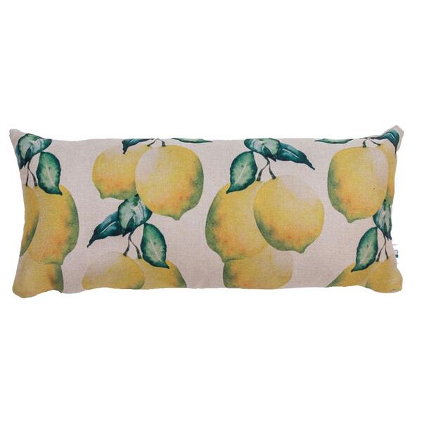 Acompanha enchimento. as almofadas são ótimas alternativas para renovar de forma rápida e simples a cara da sua décor. Usadas no sofá, cama, poltrona ou em redes, elas trazem a sensação de conforto que seu lar merece. A almofada baguete limão siciliano é uma peça cheia de charme! feita em poliéster com textura de linho e estampa de limões. cor/estampa: frente e verso: estamapa de limões sicilianos; material: capa - 100% poliéster; enchimento - fibra siliconada 100% poliéster; medidas: 52 x 24 cm; instruções para conservação e cuidados: para conservar aspectos originais e garantir a durabilidade do produto: lavar com cuidado e não utilizar o ferro de passar em temperaturas elevadas.