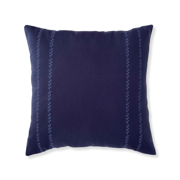 Almofada marinho com bordado de um ramo de folhas delicadas nas laterais. Transforme o seu espaço com a beleza clássica desta almofada encantadora.