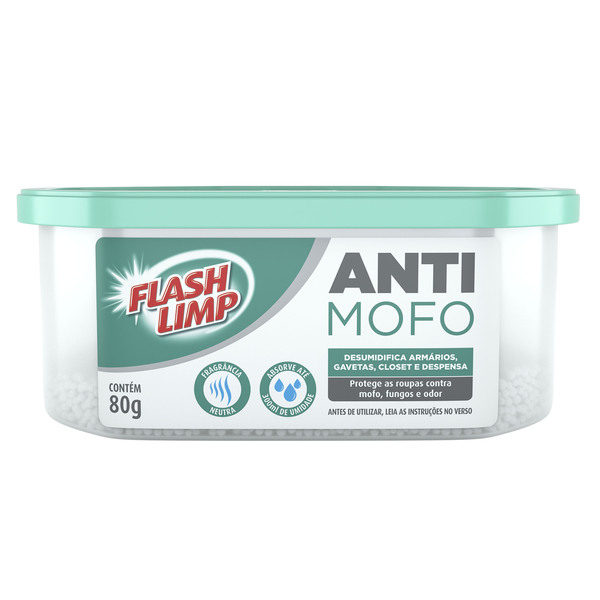O anti mofo de guarda-roupa 80g flash limp é ideal para desumidificar seus armários, gavetas, closet e despensa. É a solução certa para proteger suas roupas contra mofo, fungos e odor. Utilizando o anti mofo de guarda-roupa 80g flash limp você economiza mais tempo e água, poi...