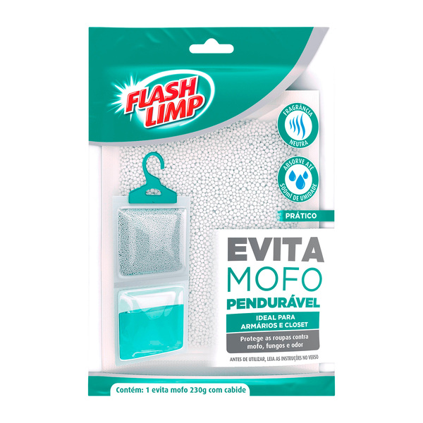 O Antimofo FlashLimp absorve a umidade dos ambientes, evitando que roupas e outros objetos sejam acometidos por mofo, fungos e odor. Proteja suas roupas e sua saúde.