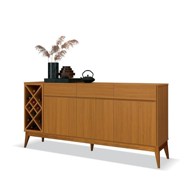 Dimensões do produto montado: altura: 81,5 cm largura: 172,5 cm profundidade: 44 cm observações: - adega; - três gavetas com corrediças telescópicas; - três portas; - prateleiras internas; - pés em madeira maciça; - pintura ultravioleta com acabamento fosco na cor naturale;...