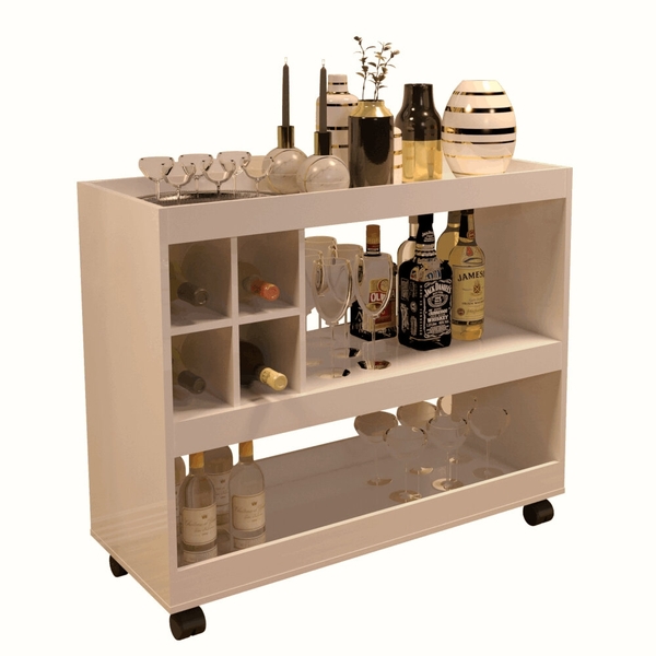 Aparador bar jb 4050 luxo pérola o aparador bar jb 4050 luxo é ideal para deixar sua sala com ainda mais charme. possui 2 parteleiras, adega para 4 garrafas,4 pés com rodízios de plástico. feito em mdp 12 mm e 15 mm, suporta até 30 kg informações do produto: altura: 75 c...