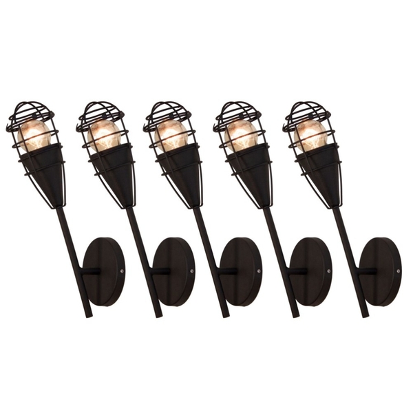 Arandela retrô preto kit com 5 a arandela retrô é uma peça decorativa que nasceu com apelo vintage e design totalmente atemporal. design funcional para que cada ambiente seja único, confortável e elegante. grades elaboradas em aço. kit com 5 unidades. dimensões do produ...