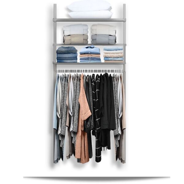 Dimensão:  1,00m x 0,50 m (largura x profundidade)altura recomendada: 2,35 a 2,75mdescritivo das peças que compõe o produto:qtde    item1    cabideiro 90cm branco3    prateleira 90 x 30 cm branco2    cremalheira de 200 cm - simples (c/ bucha e parafuso)quantidade de peças org...