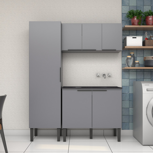 Armário Aéreo para Lavanderia MDP Cinza 3 Portas 97x45x35cm Cisne Cozimax