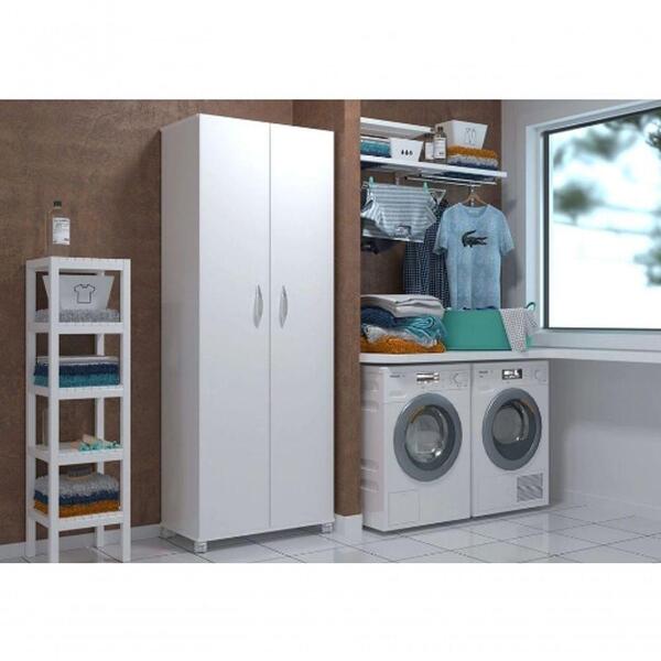 Armário alto cabeleireiros multiusos brancoarmário p/ lavanderia multiuso 2 portas área de serviçolindo armário para lavanderia com 4 prateleiras e abertura lateral para colocar escada, tábua de passar roupas ou o que desejar, material mdp com 04 rodinhas que facilitam arrast...
