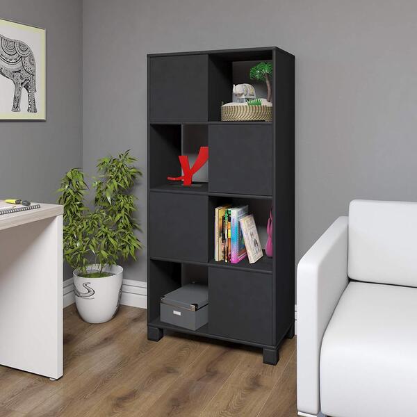 O armário com design único e elegante, este armário pode ser usado em sua sala, escritório, home office e em salas comerciais! É perfeito para expor suas decorações favoritas, pois além de ser útil e otimizar o espaço, este produto também é decorativo. Contém quatro nichos e quatro compartimentos com portas para organizar seus utensílios, livros e caixas, objetos decorativos. Material principal mdp 15mm e acabamento em bp, garante maior resistência a riscos, qualidade e durabilidade ao produto. Dimensão do armário altura: 145 cm largura: 67,5 cm profundidade: 36 cm informações do armário: cor: preto portas: sim (4) abertura lateral. Nichos: sim (4) compartilhamento com portas: sim (4) pés: sim (4) acabamento em bp. Material principal: mdp 15mm. Itens inclusos: 1 armário. Manual de montagem kit completo para montagem e manual de instruções garantia: 3 meses contra defeito de fabricação informações adicionais: - fotos meramente ilustrativas do produto no ambiente. - os objetos que ambientam as fotos não acompanham o produto; - verificar descrição e tamanho do produto antes da compra. - avaliar a mercadoria no ato do recebimento e recuse em caso de divergência ou avarias. - mantenha as informações de contato e endereço de entrega atualizados para entrarmos em contato caso necessário. - limpar com flanela ou pano macio seco, não utilizar produtos abrasivos, desengordurantes, álcool ou solvente. Não expor o produto diretamente à luz solar e à umidade. * sugerimos a contratação de um montador profissional para a montagem do produto. Não nos responsabilizamos por avarias causadas no ato da montagem. * não nos responsabilizamos pela montagem e desmontagem do produto no ato da entrega e devolução, assim como os custos gerados nestas situações. * a transportadora entregará o produto no andar térreo do endereço de entrega. * não nos responsabilizamos por subir escadas, corredores e elevadores ou transporte por guincho em apartamentos.