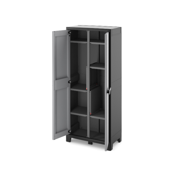 AAqui na Keter online você encontra toda a família Titan e para deixá-la completa temos o Titan Multispace. A solução que atende às suas crescentes necessidades de armazenamento, permitindo diversas configurações e ajustes nas prateleiras. O Armário Titan vem com oito prateleiras rebatíveis dinâmicas, cada uma com capacidade de carga de 15 kg - benefício de múltiplos espaços internos reconfiguráveis, que só a Keter lhe oferece na linha de armários plásticos multiuso. Um armário com pés ajustáveis para melhor estabilidade, estanque à água, possui fundo reforçado no qual você pode colocar até 30 kg e bloqueável para melhor segurança no armazenamento externo. A robustez encontra a modularidade para armazenar tudo que você imaginar, seja na área de ferramentas, lavanderia, garagem, atelier ou na sua oficina a linha Titan é imbatível!.