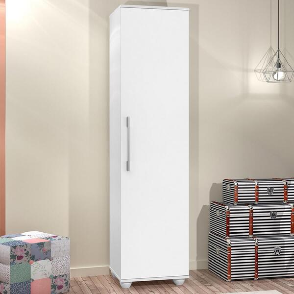 MEDIDAS [ A ] = 165 cm [ L ] = 39 cm [ P ] = 36 cm MEDIDAS DAS PRATELEIRAS: [ A ] = 36 cm x [ L ] = 33,7 cm x [ P ] = 35,5 cm PESO: 21,2kg PESO MÁXIMO SUPORTADO: 20kg MODELO: Armário Multiuso Sofia MARCA: J&A COR: Branco MATERIAL: MDP ESPESSURA DO MATERIAL: 12mm PINTURA: UV (Ultravioleta) ACABAMENTO: Brilho PORTA: Sim, 1 porta TIPO DE PORTA: Bater PUXADOR: PVC GAVETAS: Não possui PRATELEIRA: Sim, possui 4 prateleiras PÉS: Sim, possui 4 pés SISTEMA DE MONTAGEM: Parafusos e cavilhas INSTRUÇÕES E CUIDADOS: Limpar com pano seco, manter em lugar livre de umidade, ao abrigo de exposição direta ao sol. GARANTIA: 3 Meses