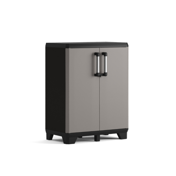 essa é uma linha de armários que se diferencia por sua robustez, amplo espaço interno e maior capacidade de armazenamento . o armário pro baixo (estilo balção)  possui duas prateleiras ajustáveis que suportam 20 kg cada, graças à barra de metal dentro da prateleira, que lhe proporcional maior capacidade de sustentação . Alças de alumínio para um visual mais profissional. Este armário é fácil de montar, limpar, manter e altamente seguro e resistente, para manter suas ferramentas, apretrechos  de jardinagem, pesca e seua materiais bem organizados em qualquer espaço. Possui pés ajustáveis e portas com adapatadores de cadeados, para maior segurança dos itens armazenados em seu interior. Pés centrais adicionais e os cantos de plástico, a serem fixados na parte traseira do gabinete e na parede, conferem ao produto maior estabilidade e garantem que seu armário terá uma vida útil mais longa.