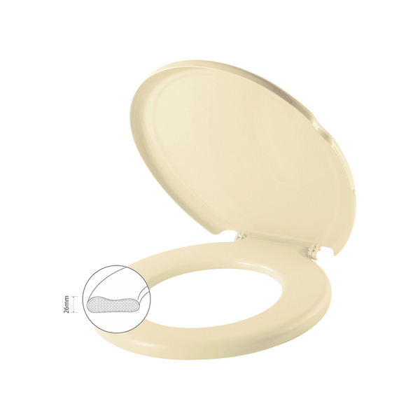 Características: aplicação: utilizado em louças convencionais. fabricado em eva. preenchido em poliuretano. acabamento brilhante. leve resistente e macio. suporta carga de até 130 kg. fácil instalação. parafusos possibilitam ajuste de distância para fixaç...