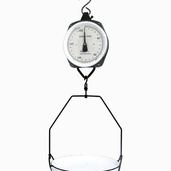 Balança suspensa com bandeja esmaltada branca   balança gancho mecânica tipo relógio. equipamento em alta qualidade para medição exata de materiais e/ou alimentos. Indicada para aferir peso de malas e mochilas para viagem materiais para postagem pesca alimentos en...