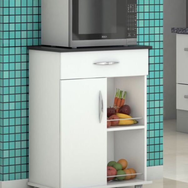 armário balcão fruteira multiuso com rodinhas        para você que procura um móvel que ocupa pouco espaço e que ofereça beleza e praticidade a click forte desenvolveu esse lindo armário ideal para te ajudar na organização da sua cozinha dispensa lavanderia com 01 gaveta espaçosa 01 porta e tem 02 espaços suficientes para armazenarem frutas legumes etc além de rodinhas para facilitar sua locomoção na hora da limpeza do dia a dia.tampo superior preto** promoção **     medidas:   altura:  72cmlargura:  60cmprofundidade:  34cm-produto compacto e com os espaços bem distribuídos -1 gavetão com corrediças metálicas-4 rodinhas de ótima qualidade-1 porta com dobradiças metálicas-puxador em pintura cromada-pintura uv brilhante-ótima bancada para micro-ondas ou bebedouro -pode ser usado na cozinha lavanderia escritório diversas partes da casa       cor: branco c/ pretoaproveite esse super preço promocional temos poucas unidades !!!       * irá com garantia* irá com nota fiscal