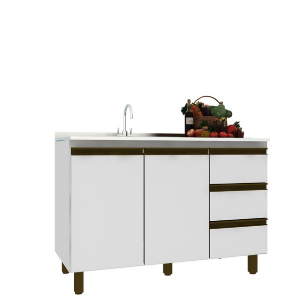 Produzido em mdp 15mm, o balcão de pia yasmim 120cm branco é ideal para promover maior produtividade e praticidade nas tarefas do dia a dia. Conta com 2 portas e 3 gavetas, com espaço exclusivo. Ideal para armazenar objetos e utensílios. Complete sua cozinha com este incrível balcão de pia yasmim 120cm branco!