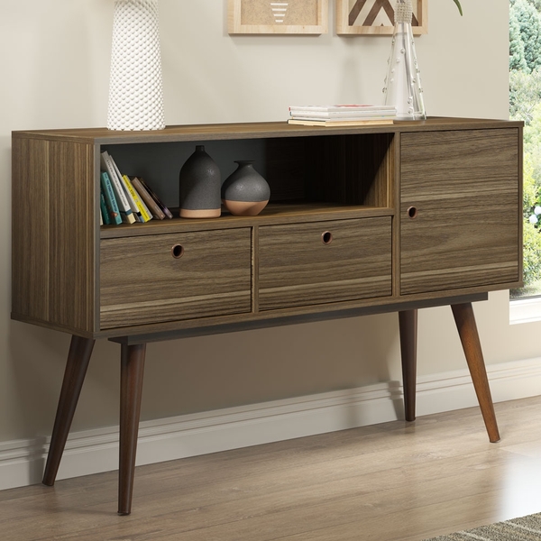 Aparador suíça marrom para ambientes como sala de jantar e sala de estar, o aparador suíça é o móvel perfeito. produzido com mdp eucaprint 15 mm, acabamento com bordas melamínicas. compartimentos com 1 porta maior e 2 menores com dobradiças metálicas. pés torneados de mad...