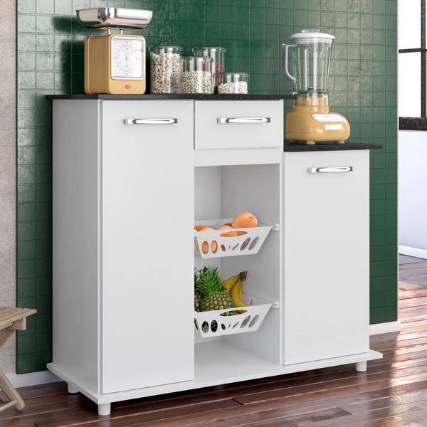 Bancada multiuso jamar branco o bancada multiuso jamar é perfeito para organizar sua cozinha ou sala de jantar, além de proporcionar um ambiente mais aconchegante e bonito! um execelente apoio extra para a sua cozinha com 2 cestinhos para acomodar suas frutas, 2 portas e 1...