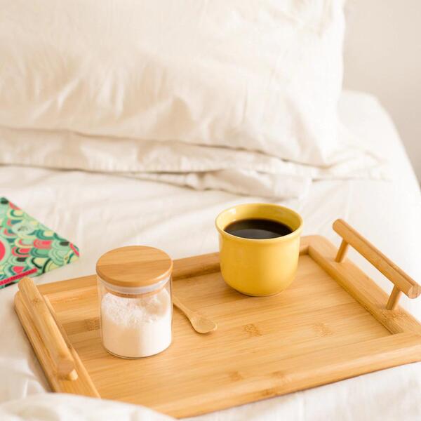 Bandeja de bambu com alças, ótimo para servir um café, sobremesa, organizar um espaço. Versátil devido as alças porque pode retirar de um lugar para o outro bem prático.medidas: 34cm x 24cm x 5cm (com as alças) x 1,9cm (sem alça)bambu natural, resistente e com propriedades antibacteriano.sugere-se higienizar o mesmo com sabão neutro e esponja macia e evitar usar produtos abrasivos no processo de limpeza. Seque-o com pano macio em seguida.hidrate a peça a cada 60 dias com óleo mineral para manter a vivacidade da peça.não pode lavar na louça louça e não pode deixar de molho.