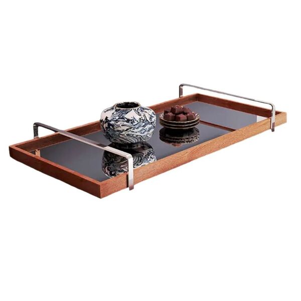 Bandeja Espelhada Madeira Com Alça Cromada