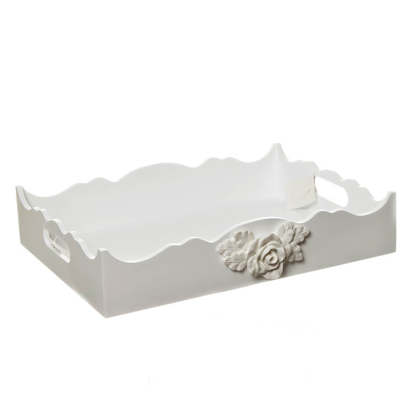 • dados técnicos bandeja em madeira mdf, pintura laqueada e decoração em resina branca.