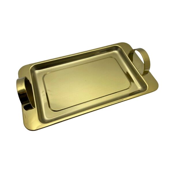 A bandeja retangular dourada pequena fineza irá agregar beleza e elegância no seu ambiente!  o item é produzido em aço inox de alto padrão. O dourado das peças fineza não são pinturas e sim são adquiridos através de uma nova tecnologia chamada de pvd (deposição física de vapo...