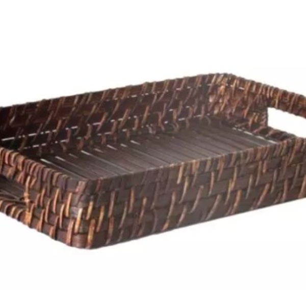Bandeja retangular rattan. 29x22x5cm mundiart gzt por suas características naturais, a fibra natural, também conhecida como rattan, poderá apresentar pequenas diferenças na espessura do trançado e na coloração no mesmo ou de um para outro. Mesmo passando por inspeção e retira...