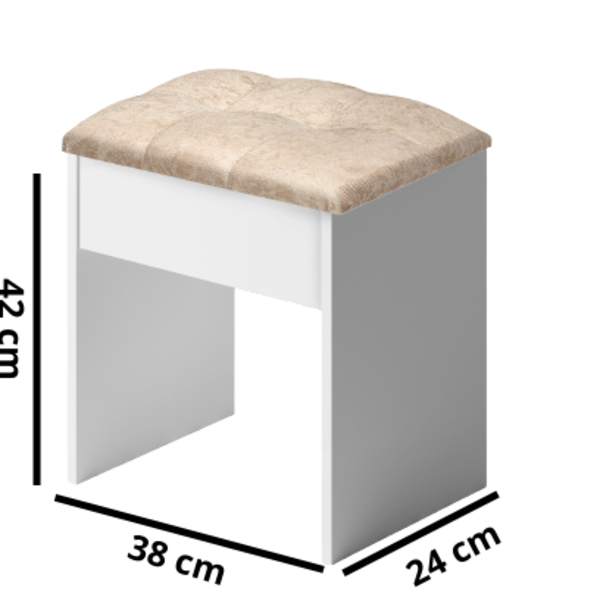 Banqueta camarim plus   a banqueta camarim plus é o item que falta para a sua penteadeira. versátil, ela serve também para colocar em qualquer lugar do quarto, utilizando para sentar ou até mesmo para apoiar e descansar os pés.   descrição do produto produzido em 100% mdf de ótima qualidade.  acabamento interno e externo. suporta até 95 kg estofado com tecido suedespuma d26   dimensões altura: 42 cmlargura: 38 cmprofundidade: 24 cm   atenção montagem por conta do comprador, a loja não oferece serviço de montagem. todos os nosso moveis possuem manual de montagem.