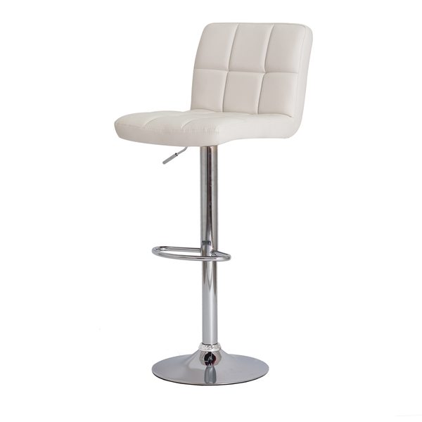 Modelo: Banqueta Gomos Branca Assento: Estofado Revestido em PU Base: Aço Cromado Profundidade: 50 cm Largura: 45 cm Altura Total: Alta 113 cm - Baixa 92 cm Altura do Chão Até o Assento: Alta 84 cm - Baixa 63 cm Medida Interna do Assento Profundidade Interna do Assento 3...