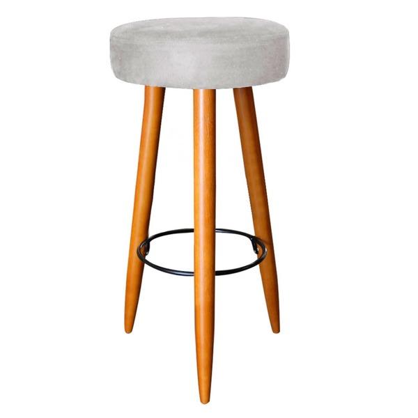 Banqueta Rubi Pés Madeira Suede Cinza