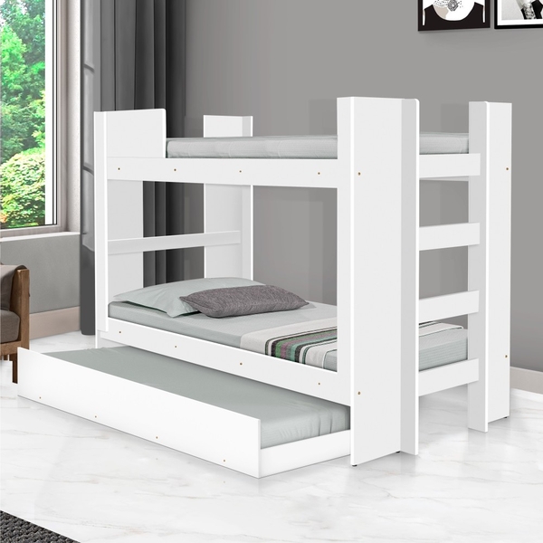 A treliche é perfeita para compor quartos de pessoas ligadas as tendências do mercado moveleiro.pintura semi-brilho dimensões da beliche:altura: 155 cmlargura: 96 cmprofundidade: 201 cminformações da beliche:cor: brancoproduto em mdfmedida para colchões 0,88 (colchão não incluso).acompanha colchão: nãopossui escada: simgrade de proteção na cama superior: nãopeso suportado 100 kg cama de cima e 100kg para cama debaixo.observação: a escada é embutida na estrutura do produto, ficando localizada na peseira ou cabeceira do produto (de acordo com a montagem)dimensões da cama auxiliar:altura: 26 cmlargura: 91 cmprofundidade: 189 cminformações da cama auxiliar:cor: brancoproduto em mdfmedida para colchões 0,88 (colchão não incluso).acompanha colchão: nãopeso suportado: 100 kg itens inclusos:- 1 beliche solteiro- 1 cama auxiliar- kit e manual de montagem.garantia 03 mesesinformações complementares:- avaliar a mercadoria no ato do recebimento e recusar em caso de divergência ou avarias.- mantenha as informações de contato e endereço de entrega atualizados para entrarmos em contato caso necessário.- limpar com flanela ou pano macio seco, não utilizar produtos abrasivos, desengordurantes, álcool ou solvente. Não expor o produto diretamente à luz solar e à umidade.* apesar de fácil montagem, sugerimos a contratação de um montador profissional caso necessário.* antes de comprar seu produto verifique as medidas do produto e do local onde pretende montar.* não nos responsabilizamos pela montagem e desmontagem do produto no ato da entrega e devolução, assim como os custos gerados nestas situações.* a transportadora entregará o produto no andar térreo do endereço de entrega.* imagens meramente ilustrativas.* objetos que compõem o ambiente das fotos não acompanham o produto.