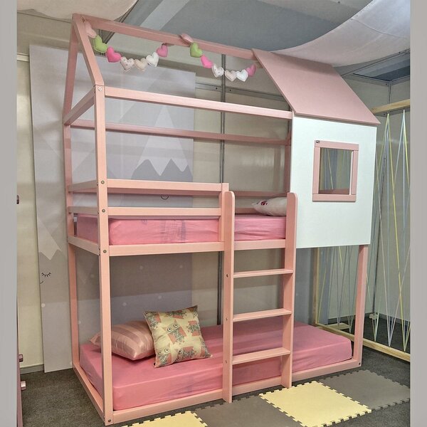 Beliche infantil casinha janelinha rosa/branco. O beliche casinha janelinha é ideal para otimizar espaço no quarto do seu filho, além de garantir noites mais aconchegantes e segura. O beliche possui a cama inferior no modelo montessori, próximo ao chão, possibilitando mais au...