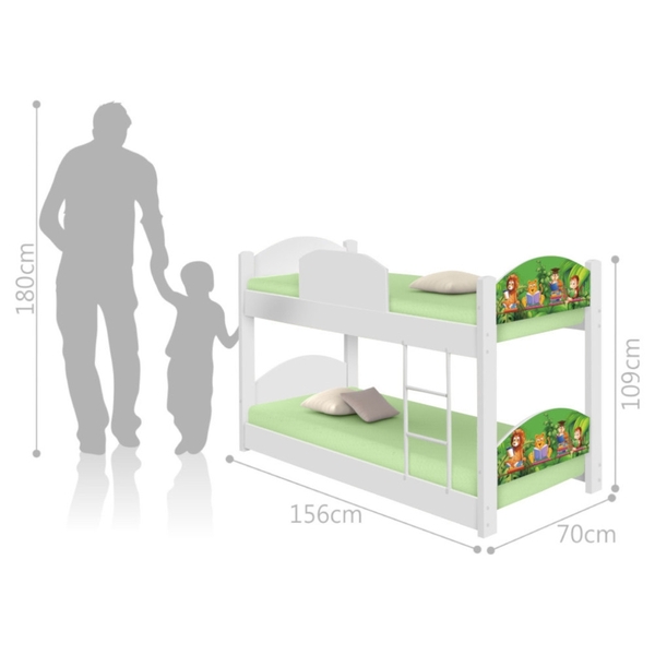 Beliche Juvenil Safari com 2 Colchões Ref- 1450 Agora a hora de dormir das meninas terá mais charme e segurança com a Beliche Juvenil Safari com 2 Colchões A Coleção Safari foi desenvolvida por nossos designers oferecendo um visual exclusivo, descontraído e divertido ao ambiente. Ela vem com escada, grade de proteção lateral na cama superior. Acomoda colchões de 150 x 70 cm que acompanham o produto. Garanta comodidade, qualidade e muita diversão para as noites de sono da garotada. Itens Inclusos Adesivo automotivo, Escada e Grade MDF Kit completo para montagem, manual detalhado de instruções. 2 Colchões D18 (150 cm x 70 cm cada um) Colchão aprovado e com Selo INMETRO. Garantia de segurança e qualidade para a criança!!! Garantia 3 meses contra defeito de fabricação Instruções de Limpeza Limpar com flanela ou pano macio seco, não utilizar produtos abrasivos, álcool ou solvente. Não expor o produto diretamente à luz solar e à umidade. Medidas do Produto Altura- 109 Cm Largura- 70 Cm Comprimento- 156 Cm Colchões D18 (150 cm x 70 cm cada um) Produzido Em Mdf De 15mm * Suporta até 35kg por pessoa em cada cama. * Posição da Escada e da Grade é de acordo com a preferência do cliente durante a montagem. * Sugerimos a contratação de um montador profissional para a montagem do produto. Não nos responsabilizamos por avarias causadas no ato da montagem. * Não nos responsabilizamos pela montagem e desmontagem do produto no ato da entrega e devolução, assim como os custos gerados nestas situações. A transportadora entregará o produto no andar térreo do endereço de entrega. Não nos responsabilizamos por subir escadas, corredores e elevadores ou transporte por guincho em apartamentos. * Imagens meramente ilustrativas * Objetos que compõem o ambiente das fotos não acompanham o produto.