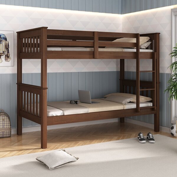 Beliche solteiro em madeira maciça imbuia. Beliche solteiro tem um design moderno e destina-se para publico infantil/adolescente ideal para otimizar o espaço do quarto. Estrutura em madeira de pínus maciça, madeira proveniente de reflorestamento, com escada fixa proporcionand...
