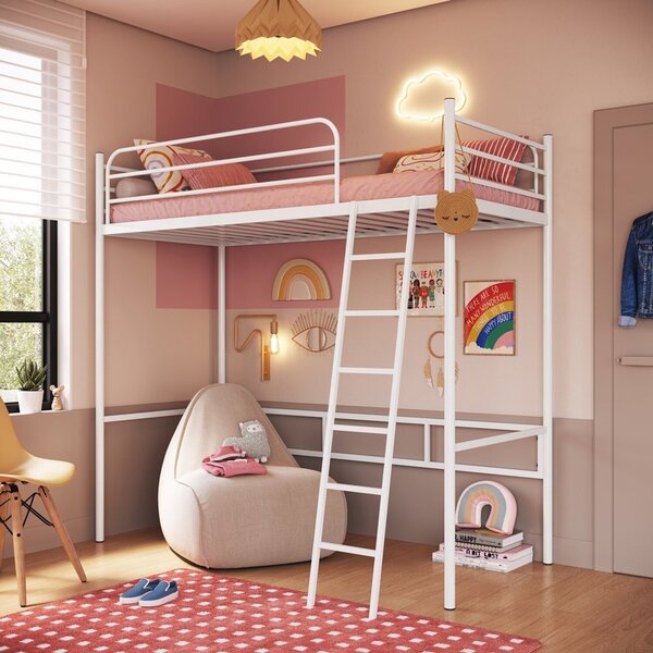 Beliche suspenso de ferro solteiro branco. Se você precisa aproveitar cada centímetro do seu ambiente, o beliche nick é a solução perfeita. Com um design suspenso, ele libera a área inferior para você criar um espaço de estudo ou trabalho, tornando o ambiente mais funcional e...