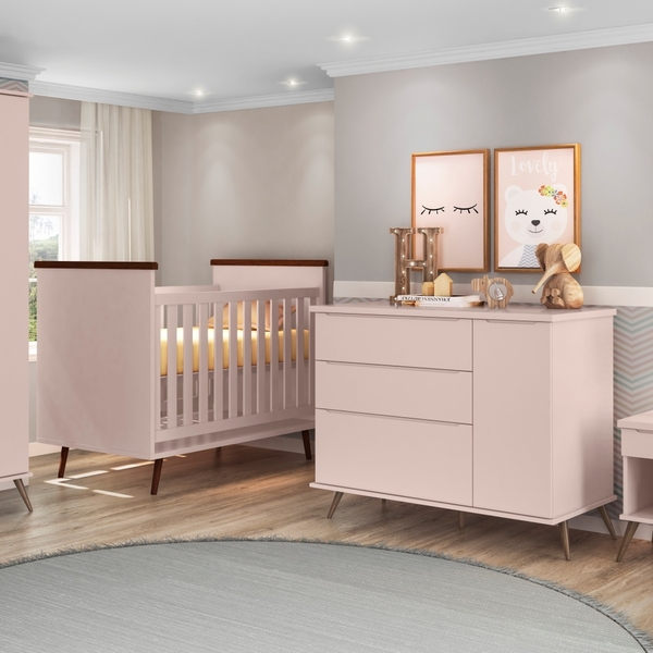 Cômoda possui puxadores cava, pés retrô pontiagudos em pinos, 3 gavetas e 1 porta. berço 3 em 1, podendo ser berço/cama/mini cama. elaborados em 100% em mdf. dimensões do produto: cômoda: altura: 91 cm largura: 113 cm comprimento: 46 cm berço: altura: 112 cm largura: 78 cm comprimento: 136 cm informações do produto: material principal: mdf cor: rosê gavetas: sim, (3) portas: sim, (1) acompanha colchão: não tipo de colchão indicado: berço (10x70x130) itens inclusos: 01 berço 01 cômoda. kit completo para montagem, manual de instruções para montagem. garantia: 3 meses contra defeito de fabricação. informações complementares: - fotos meramente ilustrativas do produto no ambiente. - os objetos que ambientam as fotos não acompanham o produto; - verificar descrição e tamanho do produto antes da compra. - avaliar a mercadoria no ato do recebimento e recusar em caso de divergência ou avarias. - mantenha as informações de contato e endereço de entrega atualizados para entrarmos em contato caso necessário. - limpar com flanela ou pano macio seco, não utilizar produtos abrasivos, desengordurantes, álcool ou solvente. Não expor o produto diretamente à luz solar e à umidade. * sugerimos a contratação de um montador profissional para a montagem do produto. Não nos responsabilizamos por avarias causadas no ato da montagem. * não nos responsabilizamos pela montagem e desmontagem do produto no ato da entrega e devolução, assim como os custos gerados nestas situações. * a transportadora entregará o produto no andar térreo do endereço de entrega. * não nos responsabilizamos por subir escadas, corredores e elevadores ou transporte por guincho em apartamentos.