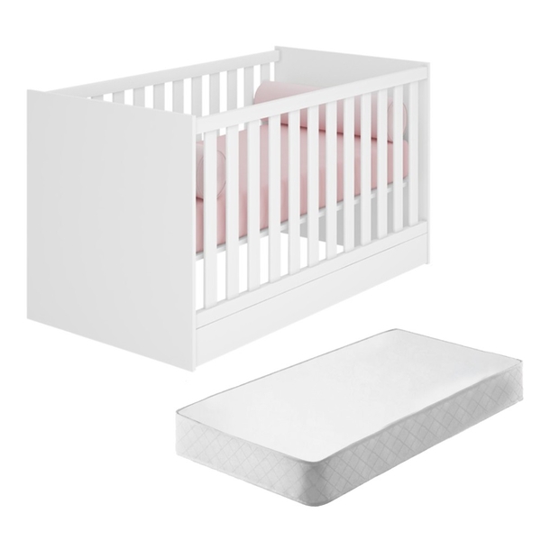 Berço marsha branco com colchão o berço marsha desenhado com todo o cuidado e com detalhes importantes para segurança e conforto do seu bebê. pode ser transformado em mini cama para acompanhar o crescimento do seu filho; estrado em mdf de 6mm e travessas em mdf de 25mm; a...
