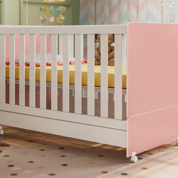 Berço encanto, certificado pelo inmetro registro 001 368/2020, seu padrão é de berço americano e posteriormente poderá ser transformado em uma mini cama. Estrutura em mdp de 12mm na cabeceira, 15mm na barra e 25mm grade, com acabamento uv. Possui as superfícies e bordas lisas e arredondadas para evitar acidentes, ideal para colchão medindo 70cm x 130cm (colchão não incluso), estrado resistente em mdf com 02 regulagens de altura, grades fixas revestidas para melhor segurança do bebê, suporte para mosqueteiro, suporta até 30 kg, acompanha 04 rodízios sendo dois com trava, se transforma em mini cama facilitando a transição da criança no berço para a caminha. Produto ecologicamente correto com embalagens preparadas para que o produto chegue em perfeito estado em sua casa. Este móvel chegará em sua casa separado em 02 volumes.dimensõesberço altura 92 cmlargura 133 cmprofundidade 77 cmmontado como mini cama altura 66 cmlargura 133 cmprofundidade 77 cmsistema de montagemparafusos e cavilhas.recomendação de limpezapara limpeza utilize pano macio levemente umedecido e na sequência pano seco. Não usar produtos químicos ou abrasivos.produtos de efeites não inclusos.colchão não incluso.*fabricado com todo o cuidado com base nas normas de segurança da abnt - certificado pelo inmetro - selo de certificação n 001 368/2020.importante saberas imagens são meramente ilustrativas, não acompanham objetos de decoração e eletrônicos.a tonalidade da cor do produto pode variar de acordo a calibração de cores do seu monitor, a iluminação do ambiente ou sua percepção visual.ao receber a mercadoria, o cliente deve verificar a quantidade de volumes descritos na nota, as condições da embalagem, caso haja algum dano não assine o comprovante de recebimento e recuse a mercadoria.montagem, desmontagem e outras instalações serão de responsabilidade do cliente.não nos responsabilizamos, no ato da entrega, por subir escadas/elevadores ou pelo transporte por guincho em apartamentos. Eventuais despesas são de responsabilidade do comprador.confira as dimensões do produto e certifique-se de que passarão normalmente por supostos elevadores, portas, escadas ou corredores de sua residência.no momento do recebimento o comprador ou a pessoa que receber os produtos deve verificar se os produtos recebidos correspondem ao mesmo modelo e à mesma quantidade dos produtos adquiridos, o entregador equivocado pode entregar volumes de outra carga.garantia de fábrica90 dias para eventuais defeitos de fabricação.garantia de fábrica90 dias para eventuais defeitos de fabricação.