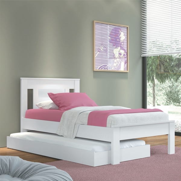 A bicama além de muito confortável com um estilo mais simples, porém trazendo muita elegancia e classe para seu quarto, agora sendo acompanhada de uma cama auxiliar, deixando-a mais completa. barras laterais em mdf 18mm. camas suportam até 80 kg sem impacto. colchão precisa ser do tamanho de até 14x88x188 (tamanho solteiro), não podendo ultrapassar os 15 cm de altura, pois prejudica o funcionamento da mesma. nâo acompanha colchões. dimensões: altura: 101,5 cm largura: 96,1 cm profundidade: 198,5 cm dimensões da cama auxiliar: altura: 19,5 cm largura: 91,5 profundidade: 190,3 informações do produto: acompanha colchão: não acompanha cama auxiliar: sim material principal: mdp 12mm, 15mm, 25mm/mdf 18mm possui prateleiras: não possui gavetas: não tamanho do colchão indicado: solteiro 88cm x 188cm (não incluso) itens inclusos: 01 bicama solteiro. kit e manual de montagem. garantia: garantia 03 meses informações complementares: - fotos meramente ilustrativas do produto no ambiente. - verificar descrição e tamanho do produto antes da compra. - avaliar a mercadoria no ato do recebimento e recusar em caso de divergência ou avarias. - mantenha as informações de contato e endereço de entrega atualizados para entrarmos em contato caso necessário. - limpar com flanela ou pano macio seco, não utilizar produtos abrasivos, desengordurantes, álcool ou solvente. Não expor o produto diretamente à luz solar e à umidade. * apesar de fácil montagem, sugerimos a contratação de um montador profissional caso necessário. * antes de comprar seu produto verifique as medidas do produto e do local onde pretende montar. * não nos responsabilizamos pela montagem e desmontagem do produto no ato da entrega e devolução, assim como os custos gerados nestas situações. * a transportadora entregará o produto no andar térreo do endereço de entrega. * objetos que compõem o ambiente das fotos não acompanham o produto.