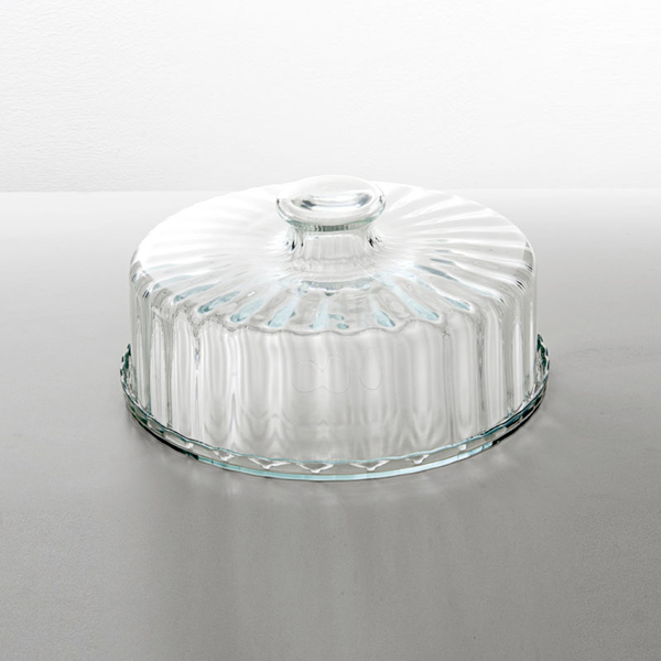 Prato para bolo com tampa rigada prático, bonito, útil e muito decorativo ? Versátil, ideal para servir ou decorar ? Bolos, tortas, pães, os mais variados tipos de salgados e sobremesas ? Embeleza e valoriza seu conteúdo ? Uso domestico ou comercial ? Produzido com as melhores matérias primas ? Vidro totalmente cristalino e muito resistente ? Prato sem textura (liso) e com borda alta para calda.dimensões:14 x 29 cm (axd)material:vidro