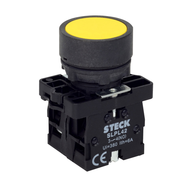 Botão à Impulsão Amarelo 1NA, da Steck: