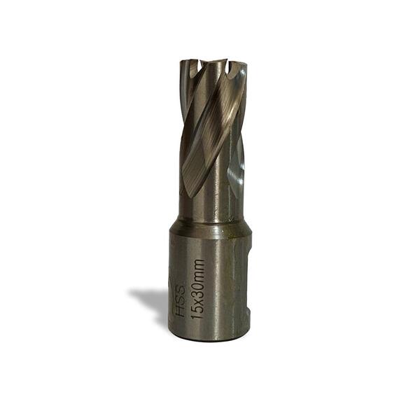 Broca anular aço rápido (hss) 15x30mm ___________________________________________________________________ detalhes do produto: > características: - múltiplas arestas - encaixe tipo weldon - aço rápido - pino piloto - corte desbastado > vantagens - mais resistente - mais ...