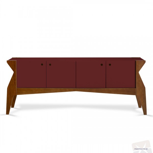 Buffet Brasa - 4 Portas Pés Em Madeira Puxador Usinado Maxi - Vinho - M49