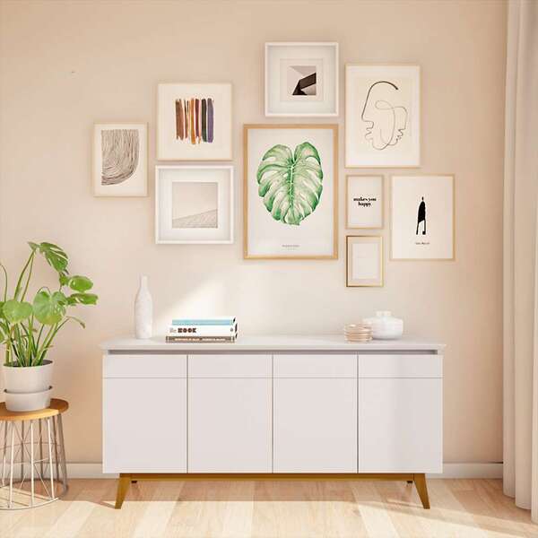 Que tal o buffet cambridge?na hora de montar sua sala de estar ou de jantar, é importante pensar em móveis versáteis e funcionais, como o buffet cambridge. Graças ao design neutro, que junta cor sóbria e base em madeira, você pode posicioná-lo em diferentes espaços para organizar suas louças, taças, talheres e bandejas - tudo isso encontra espaço nas quatro portas que compõem o móvel. Demais, não é?