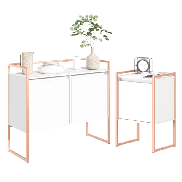 Esse conjunto de buffet e gaveteiro é perfeito para a sua sala de jantar ou de estar, com seu charme industrial para a renovação do seu ambiente elegante e moderno. O buffet é feito em mdp com acabamento em bordas em abs. Estrutura em aço com pintura epóxi suporta até 25kg o armário é feito em mdp. Possui 1 prateleira e 1 porta medidas do buffet: altura: 87,8 cm largura: 100,9 cm comprimento: 40 cminformações do buffet: cor: branco cobre portas: sim (2) suporta até 25kg pés: sim (2) industriais material principal:mdp estrutura em aço tampo superior dimensões do gaveteiro: altura: 73 cm largura: 43 cm profundidade: 40 cm informações do gaveteiro: cor: branco cobre material predominante:mdp perfex 15 mm pés: sim, industriais. Prateleiras: sim (1) portas: sim (1). Itens inclusos: 1 buffet 1 gaveteiro manual de montagem kit completo para montagem e manual de instruções garantia: 3 meses contra defeito de fabricação informações adicionais: - fotos meramente ilustrativas do produto no ambiente. - os objetos que ambientam as fotos não acompanham o produto; - verificar descrição e tamanho do produto antes da compra. - avaliar a mercadoria no ato do recebimento e recuse em caso de divergência ou avarias. - mantenha as informações de contato e endereço de entrega atualizados para entrarmos em contato caso necessário. - limpar com flanela ou pano macio seco, não utilizar produtos abrasivos, desengordurantes, álcool ou solvente. Não expor o produto diretamente à luz solar e à umidade. * sugerimos a contratação de um montador profissional para a montagem do produto. Não nos responsabilizamos por avarias causadas no ato da montagem. * não nos responsabilizamos pela montagem e desmontagem do produto no ato da entrega e devolução, assim como os custos gerados nestas situações. * a transportadora entregará o produto no andar térreo do endereço de entrega. * não nos responsabilizamos por subir escadas, corredores e elevadores ou transporte por guincho em apartamento